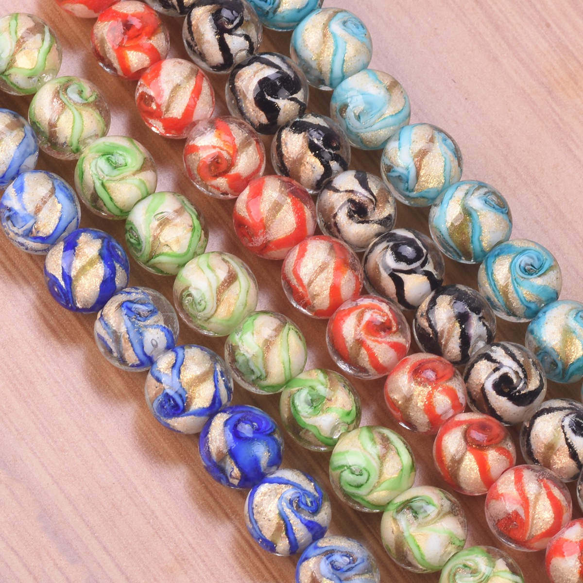 10pcs Round 10mm 12mm Lace Foil Lampwork Glass Handmade Loose Beads for Jewelry Making Accessories DIY Crafts Findings